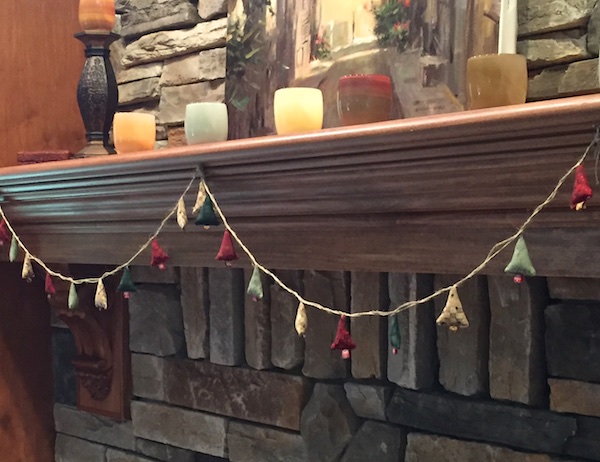garland on fireplace