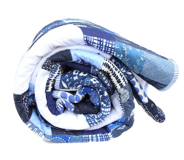 Nine Patch Blues Quilt Rolled