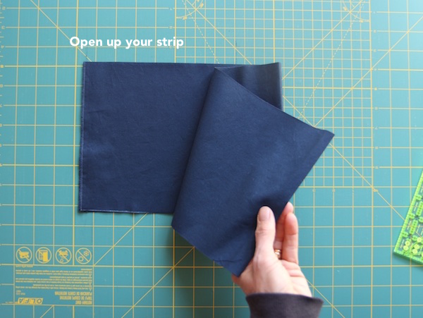 ● Cut the selvedges off before you press the seam open – they are tighter and have less give than the fabric itself and can cause a pucker sometimes. Make a big enough seam so that you can do this. So make your sewing line ½” away from the selvedge. Press the seam open so it lays flat.